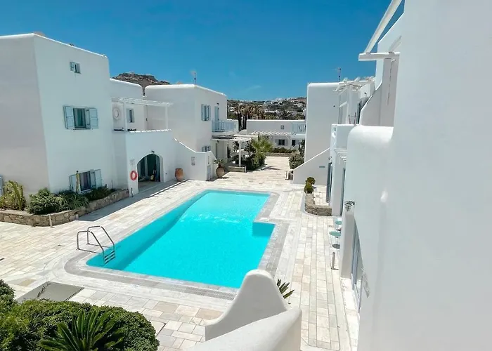 De gesitueerde in Ornos Blue Daisy House, Ornos, By Myconbay Mykonos Villa ligt op minder dan 5 minuten lopen van Korfos Beach en biedt gasten een gemeubileerd terras en een zwembad. Dit vakantiehuis biedt uitzicht op de tuin en ligt op afstand van 2 km tot het Klein Venetië.